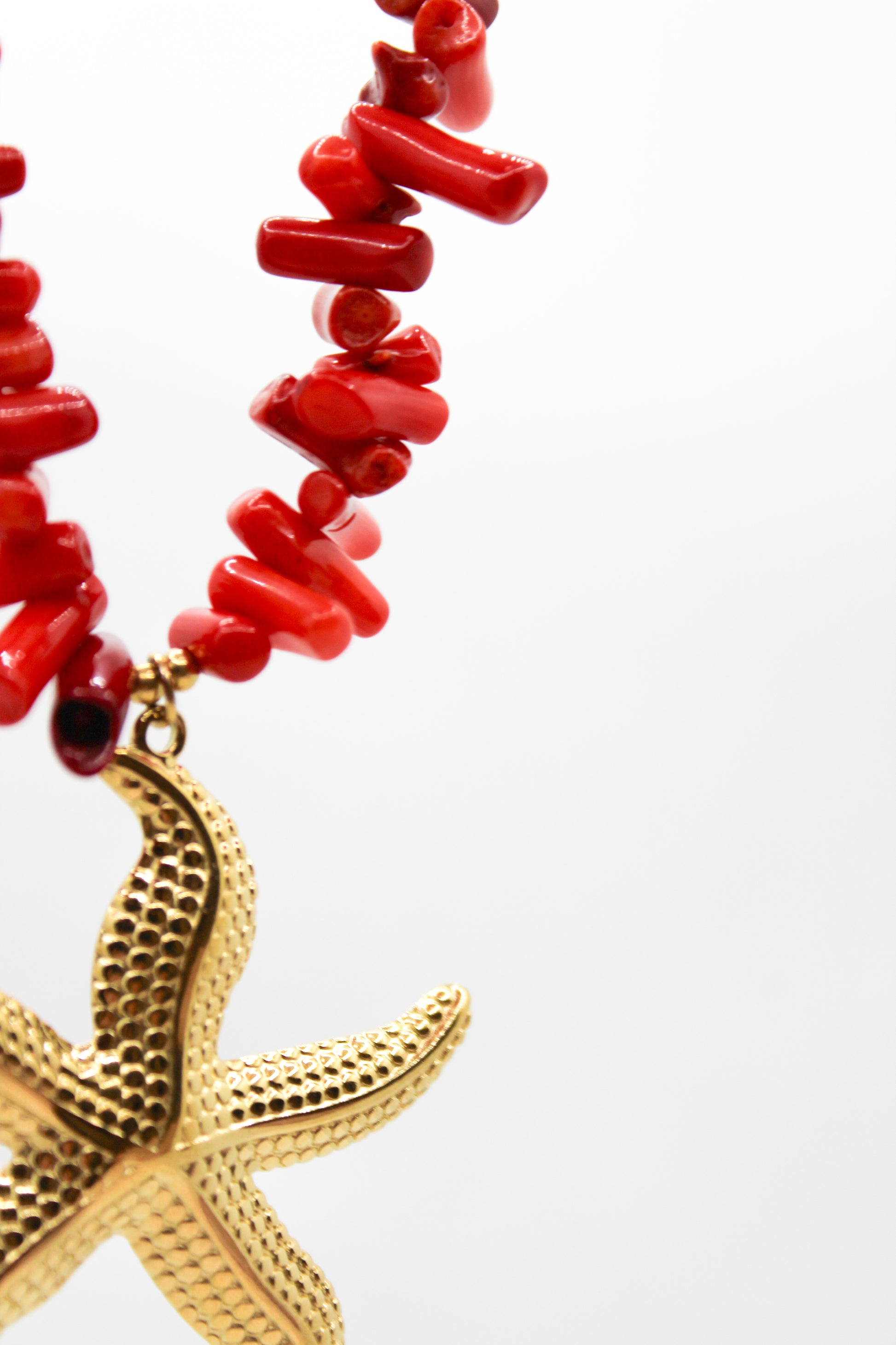Un collar lleno de energía y color. Las ramitas de coral abrazan una estrella de mar dorada que nos recuerda esos días de playa, sol, y una buena cena. Perfecto para darle un toque vibrante y veraniego a cualquier look. 🪸⭐️